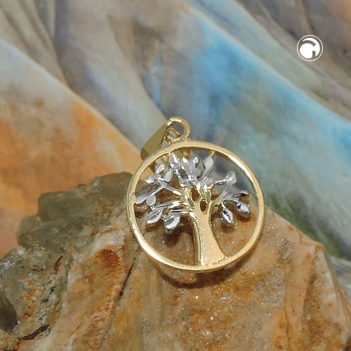 Anhänger 12mm Baum des Lebens bicolor 9 Karat Echtgold