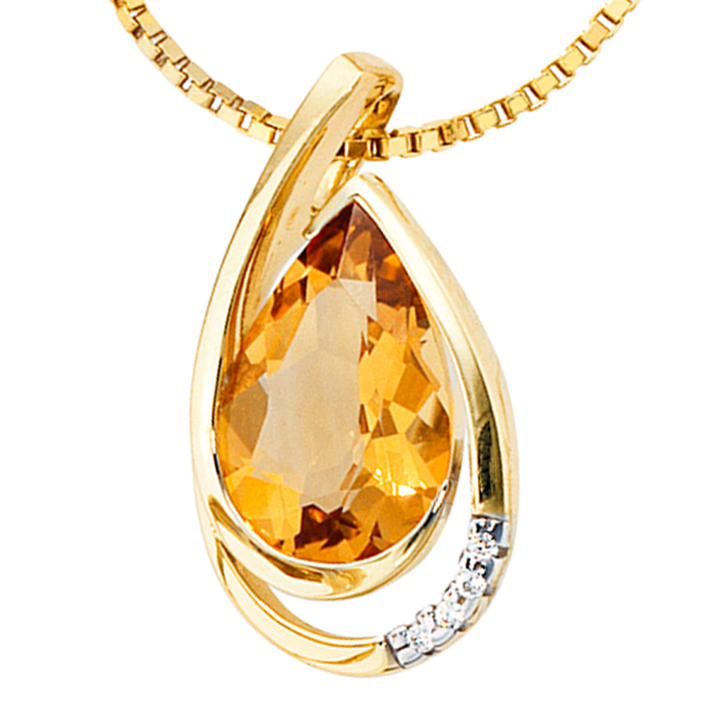 Anhänger Tropfen 585 Gold Diamanten Citrin