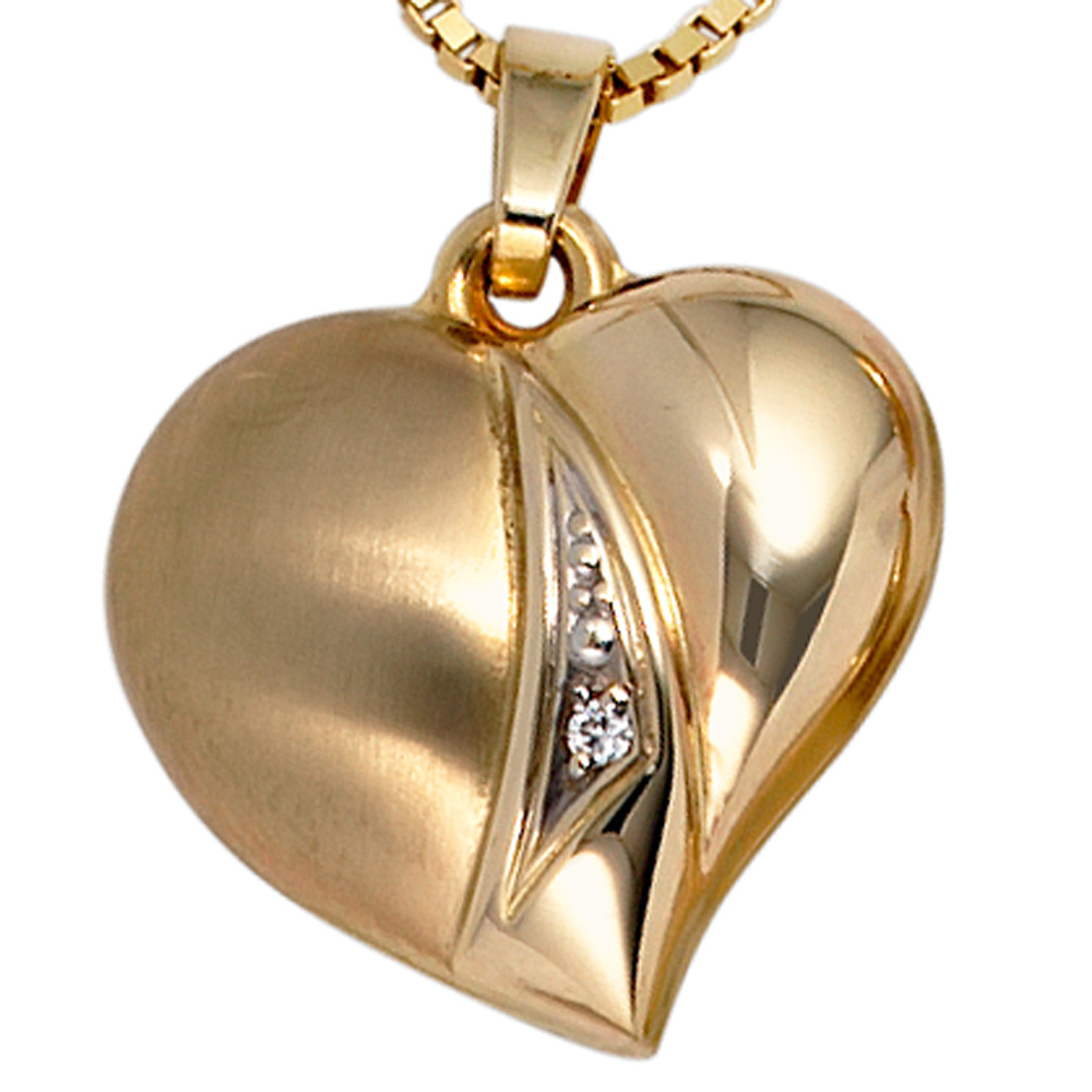 Anhänger 'Herz' aus 8 Karat (333) Gelbgold, teilrhodiniert, teilmattiert, mit einem Zirkonia, Höhe ca. 17,2 mm, Breite ca. 16,3 mm, Tiefe ca. 7,1 mm, Innenmaße der öse ca. 4,4 mm x 2 mm, Gewicht ca. 1,0 g * Bitte beachten Sie die Maße! Auf dem Foto kann der Artikel größer wirken *
