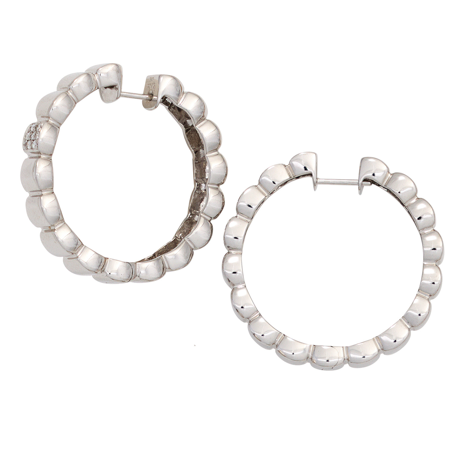 1 Paar Creolen mit Klappmechanik aus 14 Karat (585) Weißgold mit 14 Diamant-Brillanten, 0,11 ct.,... mehr