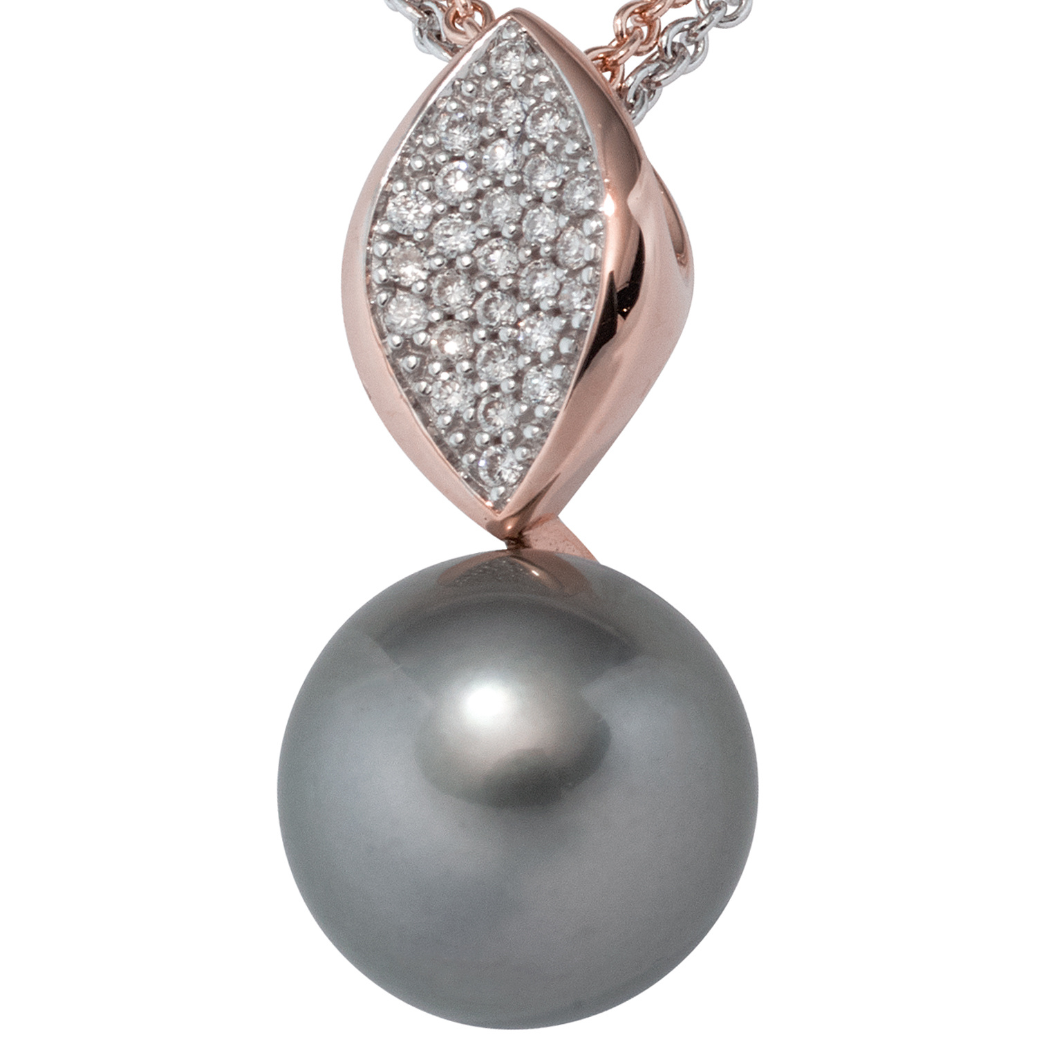 Perlenanhänger 585 Gold Rotgold 27 Diamanten Tahiti Perle