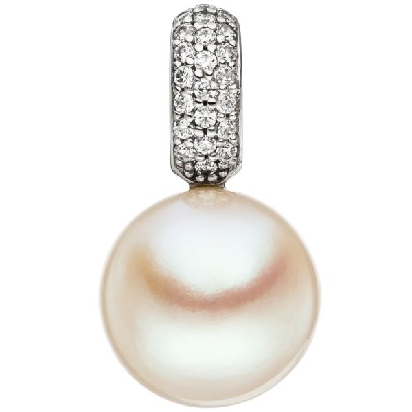 Einhänger / Anhänger aus 8 Karat (333) Weißgold, mit einer Süßwasser-Zuchtperle und 22 Zirkonia,... mehr